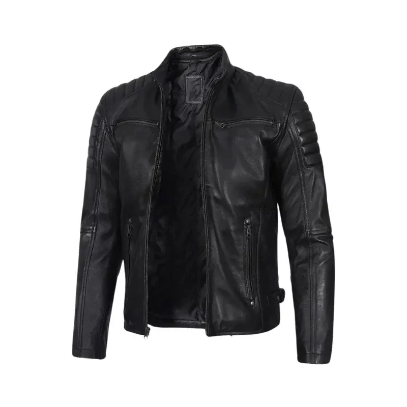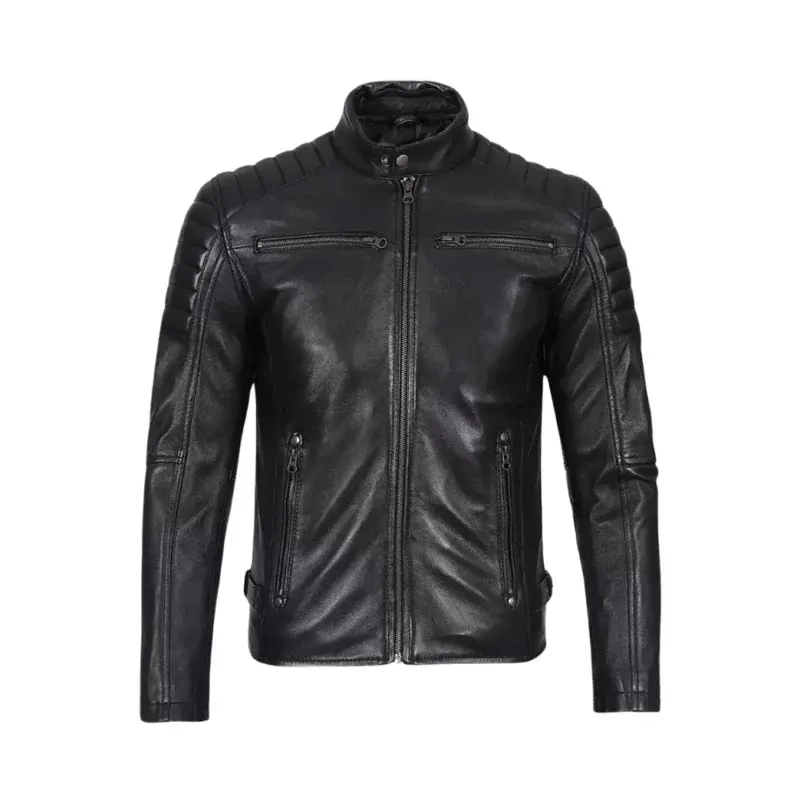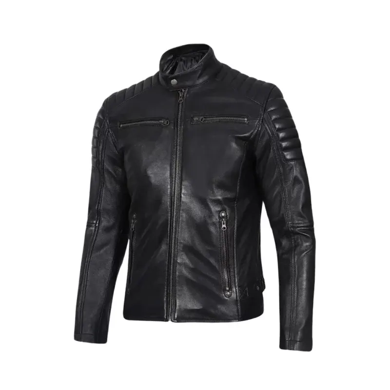 Classic Men’s Black Leather Cafe Racer Jacket — sleek design, premium genuine leather, and comfortable fit. Perfect for casual rides or stylish everyday wear. Durable, timeless, and effortlessly cool.