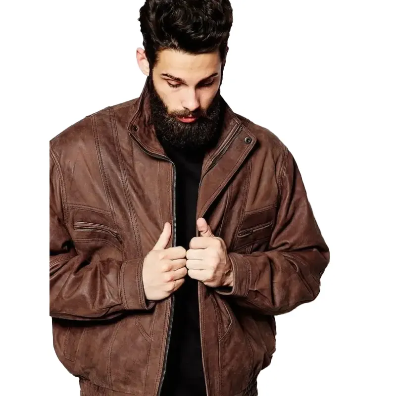 Mens Oversized Brown Leather Bomber Jacket
